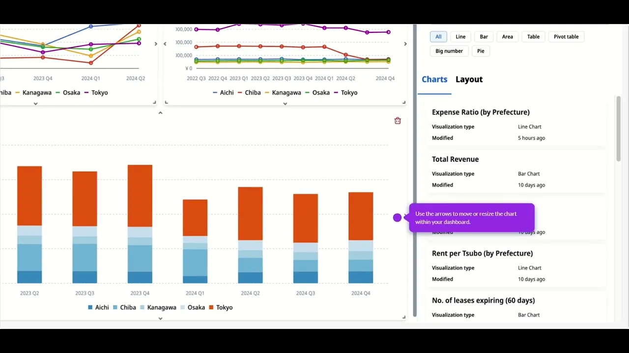 DNK Investment Manager allows you to go beyond default dashboards by combining charts, comparing performance across periods and geographies, and adjusting filters to generate tailored reports to cater to your asset types, portfolio structures, and reporting needs.
